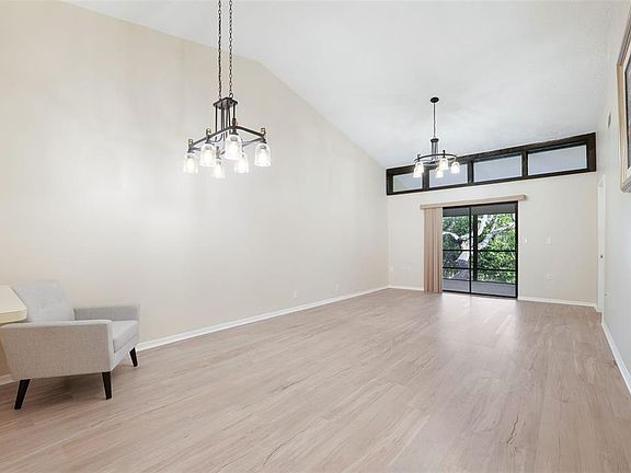 Welcome to Forest Lake Condos and this quiet upstairs corner unit featuring 2 bedrooms and 2 bathrooms. With extra windows, the home is filled with natural light, creating a bright and inviting atmosphere. The spacious living and dining area boasts luxury vinyl flooring and soaring vaulted ceilings, offering both comfort and style. A glass-enclosed balcony with screens provides the perfect spot to unwind and enjoy the peaceful setting. Washer and Dryer included and water paid for by the owner. The split-bedroom layout ensures privacy, with the guest room featuring its own bathroom with a tub, while the primary suite offers a private bath with a step-in shower. Reserved covered parking is included, along with ample guest parking. Forest Lake Condos offers wonderful community amenities, including a clubhouse with regular activities, a sparkling pool, and a fitness room. Conveniently located near shopping, dining, and easy freeway access, this home combines comfort, lifestyle, and convenience in one desirable package.