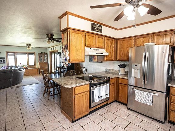 - Included: Dishwasher, Electric Oven, Electric Range, Disposal, Gas Water Heater, Humidifier, Refrigerator, Water Softener Owned, Vented Exhaust Fan