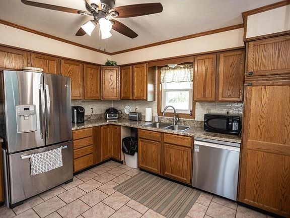 This Move in ready 4 bedroom, 2 bath home sits on a generous .65 acre lot. The spacious living room has a full wall of windows with views of the skyline. A 12 X 17 covered patio for outside dining or just relaxing and a 28x33 open patio. There is an oversized single attached garage for convenience. But that's not all- a 24x28 detached heated garage complete with an 18x24 attached shop. It is truly EVERY MAN'S DREAM COME TRUE!