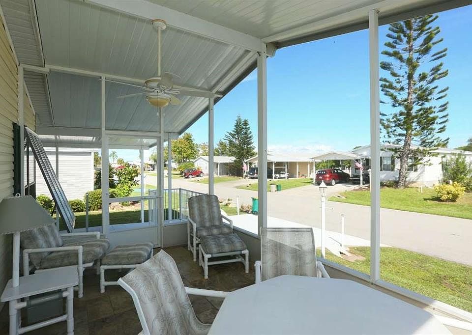 OH SO PRETTY! Furnished Sturdy 2x6 construction. Inviting Island Kitchen floor plan offers sliding glass doors leading to a raised screen porch that faces east to capture the river breeze. French doors lead to spacious Den/3rd bedroom. Interior bonus room includes W/D & large enough tor a desk. Master suite runs full width of the home.
