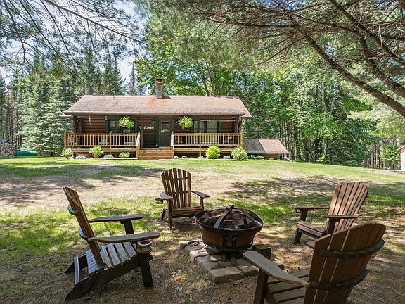 If you have ever dreamed of owning a log cabin tucked away in the woods of Northern Wisconsin, your dream just became a reality! Welcome home to this 3 BR/2 BA year round log home on 9 acres that abuts the Nicolet Forest. Quite a few recent improvements incl. the spray foam/heating of the 26'x36' pole bldg, new furn. and central air, extending the deck, and the list goes on! The covered porch welcomes you in to the open concept kit/dining/living room area, with t&g pine ceilings.There are 3 stoves to cozy up to,one on the main floor(new!), pellet stove in the LL and one in the she shed. 2 bedrooms and full bath complete the main floor, with rec room, laundry & storage and additional bonus room that is being used as a 3rd BR downstairs. Plenty of storage in the 2nd garage, with storage space above and a little shed as well. The 3 season room is perfect for enjoying nature or watching the game! Close to snowmobile/nature trails, schedule your personal tour and get ready to fall in love!