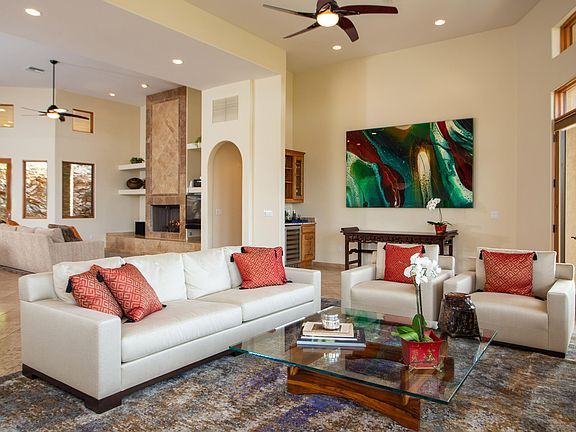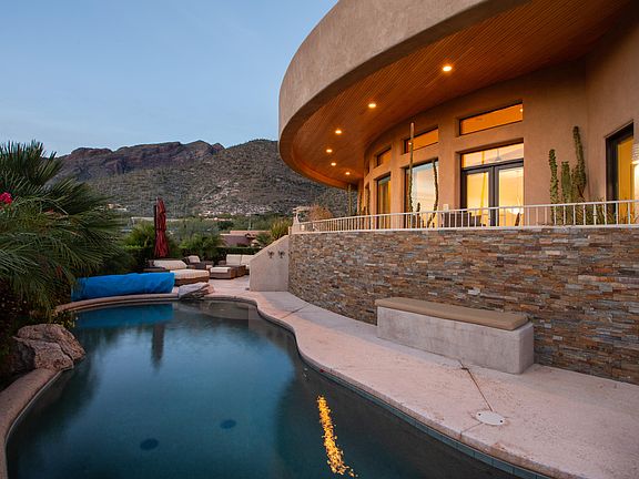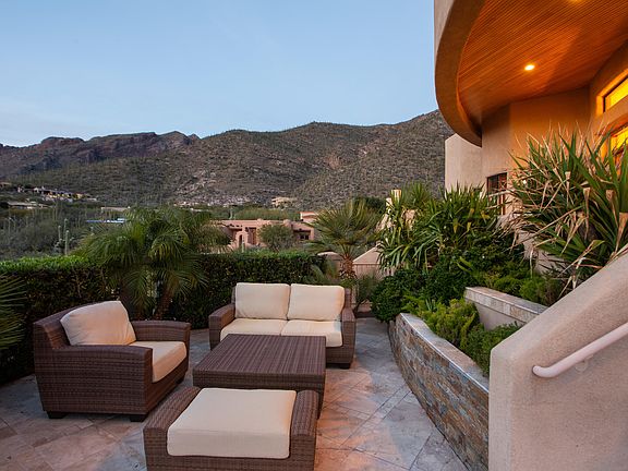 Crisp SW contemp. nestled in the shadows of the Catalinas in manned gated comm. of Sin Vacas. Wrap around decks capture the views. Conv. elevator makes for an easy lifestyle in this two story gem!! True great room floor plan w/dramatic high ceilings & walls of windows for grand views & light filled space. Island kit. w/ knotty alder cabs & upgraded granite. Built-in fridge, gas cook top, warming drawer, beverage fridge, & prep sink. Pvt wing w/office (br 2) & owner's suite w/ well appointed bathrm w/ jetted tub, steam shower, w/ access to spacious deck that can be transformed into interior space (plans avail.) Don't miss ground level guest ste br 5. Covered patio melds w/ great rm w/ outdoor kitchen, tv mt, lush plants for extended living area. Pool & Spa in lush grotto setting.