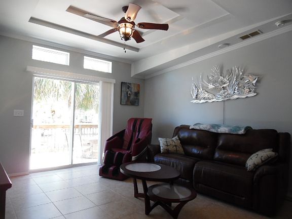 If you are in search of a HUGE garage and a private Movie Theater then you need to see this home. Downstairs there is a 4+ car garage with Extra TALL ceilings and garage door so even a lifted Truck will fit inside, Work Shop with built in shelving, 8 seat Movie Theater with all reclining seats, Popcorn machine as well, Large storage room under the staircase, and a foyer. Upstairs you have a 3 bedrooms, 2 bathrooms, dining room, Kitchen, and Living room with a private Balcony that over looks your rear yard and close enough to the pool to see the action but far enough away to not hear all noise if you don't want to. This home has Granite Counter tops throughout the Kitchen and both Bathrooms, and Tile throughout the whole house. The exterior and interior were just painted as well. This Townhouse is located on a Cul de Sac so there is very little traffic and it also features a larger driveway than most of these homes so you can truly fit 4 cars in the driveway and it features one of the largest yards in this community if not the largest. This home will not last long so call today to see it.