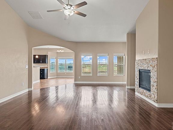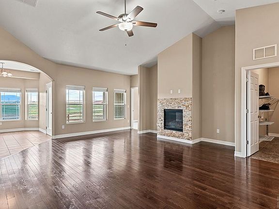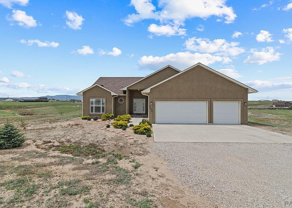 Indulge in the serene seclusion of rural living while maintaining convenient access to Colorado Springs or Pueblo. This stunning residence still feels brand new throughout. The expansive living area, adorned with luxurious wood flooring and a cozy gas fireplace, beckons you to revel in the breathtaking mountain vistas. Seamlessly connected, the floor plan effortlessly transitions into the kitchen and dining space, complete with a door leading to the rear patio—where you can marvel at the panoramic views. The kitchen features elegant granite countertops, sleek stainless steel appliances, and a sizable island with a breakfast bar. Retreat to the master suite, situated at the rear of the home, offering a tranquil sanctuary. The attached master bath showcases dual vanities and a spacious walk-in shower, complemented by a two-sided walk-in closet. Designed for privacy, the split bedroom layout accommodates two additional bedrooms and a full bath on the opposite side of the residence. The laundry/mud room is strategically positioned off the three-car attached garage. The surrounding landscape is adorned with xeriscaping and natural features, ensuring effortless maintenance. Step onto the rear patio, extending into a rocked yard enclosed by split rail fencing. With 2.88 acres of land, there's ample space to expand or create your own mini ranch. Accessible via paved roads, you'll appreciate the ease of reaching this home without sacrificing its rural charm.