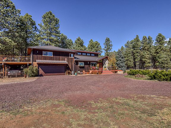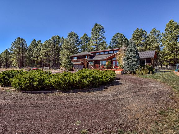 Life is good with 360 degree views and easy access to all things Flagstaff. Enjoy tranquility with proximity to Snowbowl Ski Resort, forest, trails, schools, hospital, downtown shops, restaurants and more. Situated on 4.95 subdividable private acres, the open concept design and soaring vaulted ceilings in the main living areas provide a spacious yet cozy feel. Clarestory windows bring in attractive ambient lighting with a touch of deep blue Flagstaff skies. The functional split floorplan is highlighted by a main level master suite. All generously sized bedrooms exhibit architectural and visual appeal with vaulted ceilings and, of course, picturesque views gracing every window! Some of the many improvements include new metal roof with water catchment gutter system, double pane windows