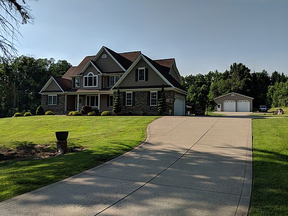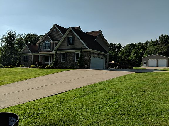 Has well hidden gas well that includes royalties and free natural gas for home, garage, pool, etc. Also has second access/service drive. Unfinished 2200 sq ft walkout basement with French doors, full size windows and plumbed for full bath. Would make great in-law suite or extra living space. 32'x32' detached building with 10' doors. Fenced In-ground pool with free heat. Automatic whole house natural gas backup generator. Many extra features and plenty of room to expand.