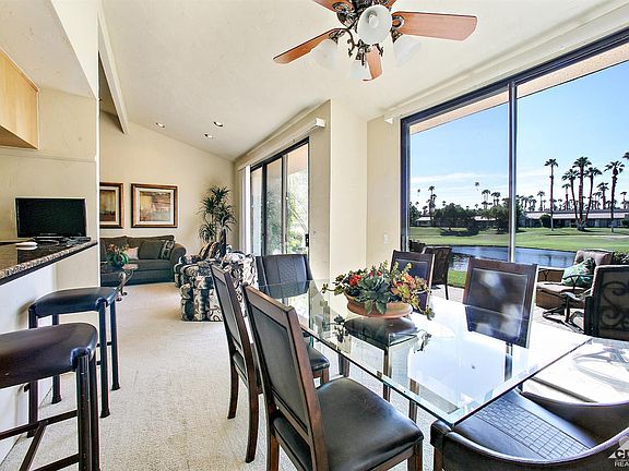 Gorgeous south facing lakeside view, this lovely Cottonwood plan was the model at Palm Valley. Tastefully updated, beautifully turn-key furnished, just bring your golf clubs and start enjoying the resort life! Extra wide walkway with clean desert landscaping, nice flooring throughout, updated kitchen with granite counters, oak cabinets. 3 great bedrooms, tastefully updated baths, immaculate condition. Truly move-in ready on one of our most lovely lots. Perfect for investors, sellers have a renter lined up for the season at excellent rate (this would transfer with the home). Palm Valley is one of the desert's premiere private resort communities with two 18 hole Ted Robinson golf courses, outstanding athletic complex, tennis and pickelball courts, 2 restaurants, spa, beauty shop. Above all, there is a warm social community here with a full calendar of fun events, so you can join in the fun! No assessments or minimums here. Join us!