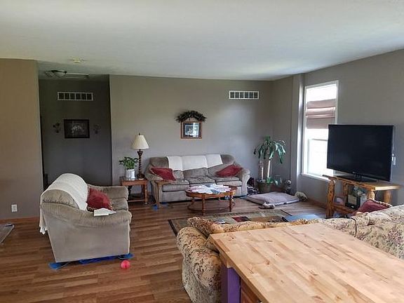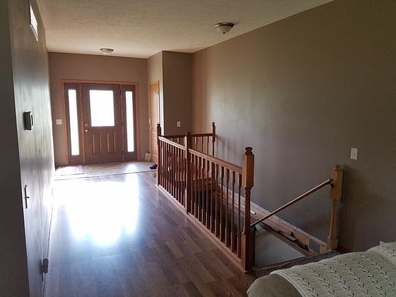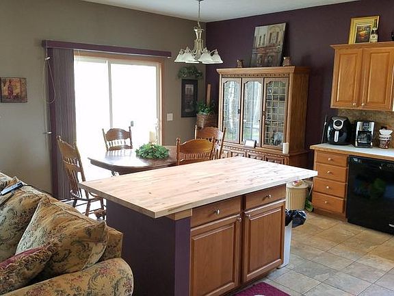 Just a rocks throw north of town sets this newer home on approx 7 acres. Open floor plan, nice sized rooms, butcher block counter top on the kitchen island, large back deck looking at the woods, lots of privacy, 9 ft ceilings in both the main level and in the full, walk out basement. Heated and cooled with a geo thermal unit. 16x24 shed for some extra storage if needed. All listing information/measurments are approx