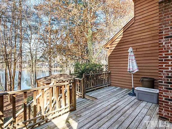 Spacious North Raleigh townhome w/impressive lake views! Great value for the square footage. Gorgeous setting close to shopping. Updates: fresh int paint (1st & 2nd flrs), light fixtures, & dual flush toilets. Large kitchen w/tile countertops, gray appliances, & pantry. Picture window in breakfast nook. Hardwoods in family & dining rms, up steps, down hall. FP w/brick surround. Private deck overlooks the lake. WIC in master. Finished 3rd flr bonus w/wet bar, new skylights, & ceiling fans. Ample closets.