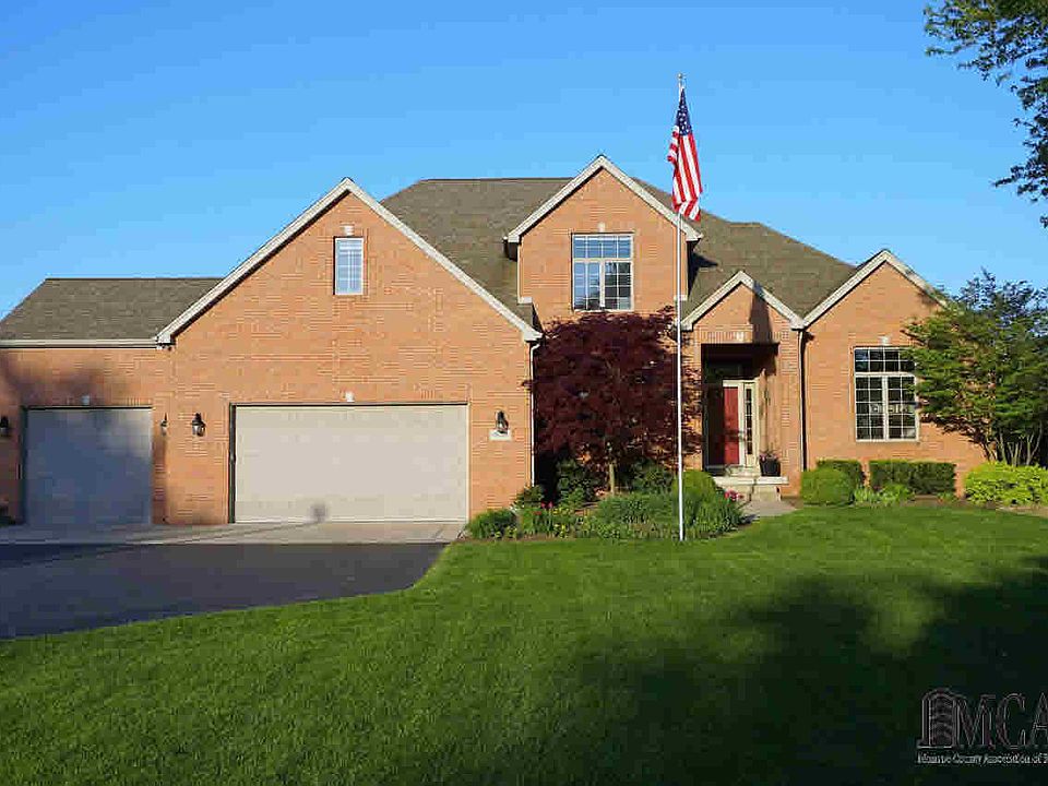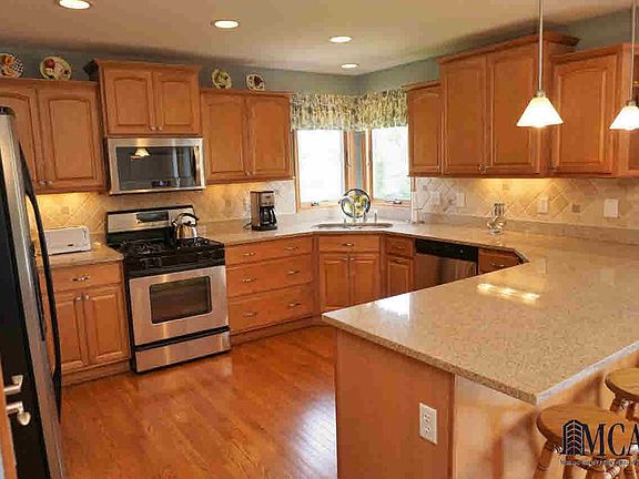 Beautifully Landscaped Brick Home with master suit on main floor with vaulted ceilings, walk-in closet, master bath with double sink, separate soaking tub & shower.Large finished basement with kitchen, full bath, and night lighting going up the stairs. Large eat-in kitchen with granite & tile back splash, hardwood floors and doors leading to deck & quiet backyard.