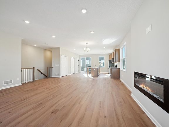 The kitchen, dining and family room flow perfectly together. This versatile space is great for entertaining or a cozy night in next to the electric fireplace.
