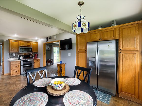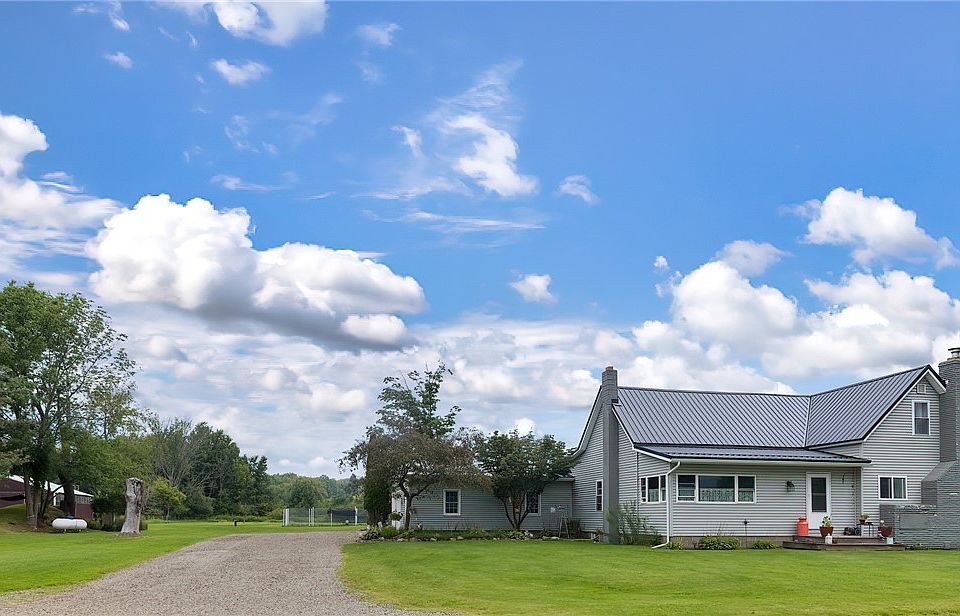 Welcome home to this beautifully situated Farmette! This property has so much to offer with the many updates. Brand new metal roof in 2023. New appliances in kitchen and laundry in 2021. Updated Master bedroom in 2023, that has a slider out to a private patio, overlooking the large back yard, apple trees, and constant supply of wildlife. Designated dining room leads into the oversized living room. Large picture window to again accommodate the nature enthusiast. Sellers also repaired the chimney and so you can enjoy the wood burning stove on a cold winters day. Freshly graveled driveway up to a 31' x 22' garage, and many hours cleaning up the grounds makes this Farmette ready for you to step in and start enjoying the beauty! Curtains and rods will be removed prior to closing.