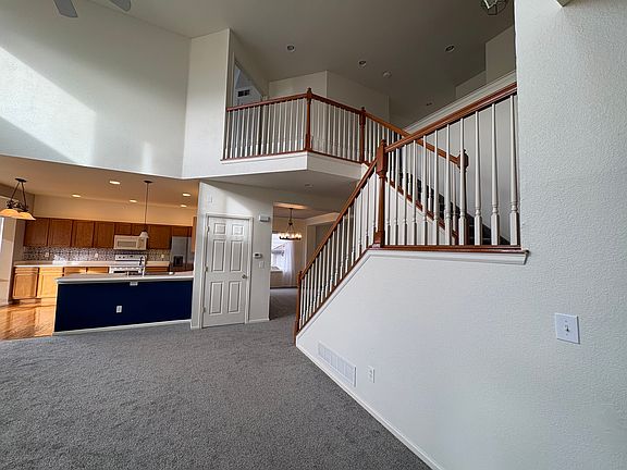 Have you been dreaming about a rental home with amazing mountain views? This is a 4 bedroom 3.5 bath home with additional loft, office space, and finished walkout basement to beautiful open space/mountain views. 2 car oversized garage with plenty of storage space. Huge deck with views. Open floorplan large kitchen/breakfast nook. Vaulted ceilings and newly painted interior. Kitchen has been upgraded with over/under lighting. New refrigerator/ice maker, dishwasher, washer/dryer. New carpet on main floors. Backyard views greenbelt/walking paths with unmatched foothill mountain views. Large yard with some fencing and play/garden area. Finished walkout basement with flagstone patio area, full bathroom, bar/kitchen area with full fridge, bedroom area, and large storage. Pets are welcome with additional security deposit fee.