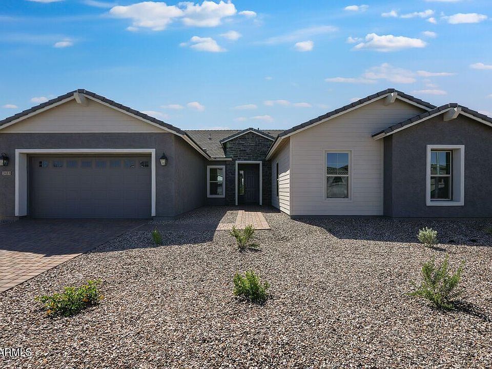What's Special: 5th Bedroom | Flex Room | 3-Car Tandem Garage. New Construction - Ready Now! Built by America's Most Trusted Homebuilder. Welcome to the Palisade at 7653 W Remuda Drive in Aloravita South Summit. Inside, the open-concept great room flows into the dining area, kitchen, and covered patio. The private primary suite offers a peaceful retreat. You'll also find flexible living spaces, five bedrooms, and four bathrooms. Additional Highlights include: Double gate, shower at bath 4, freestanding tub at primary, complete reverse osmosis system, custom backsplash and bath tile, built in cabinets at flex, white cabinets, 8x40 tile in grey and upgraded carpet. Virtually staged photos are for representative purposes only.