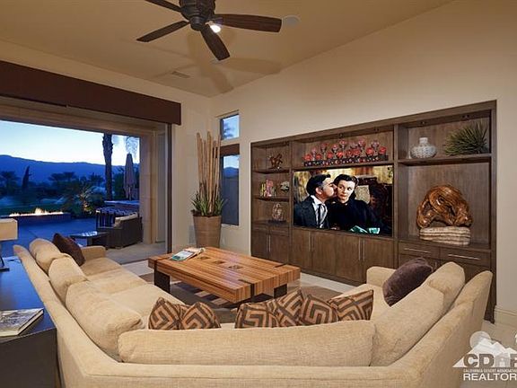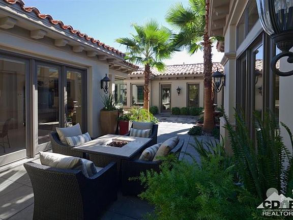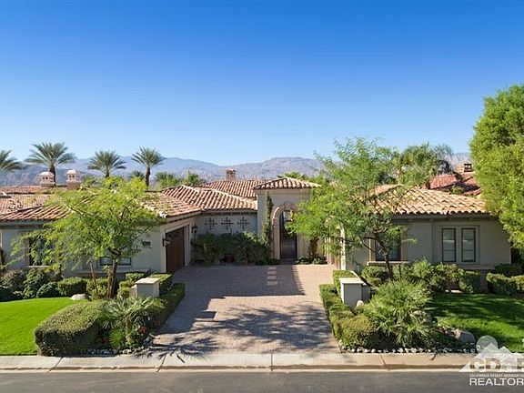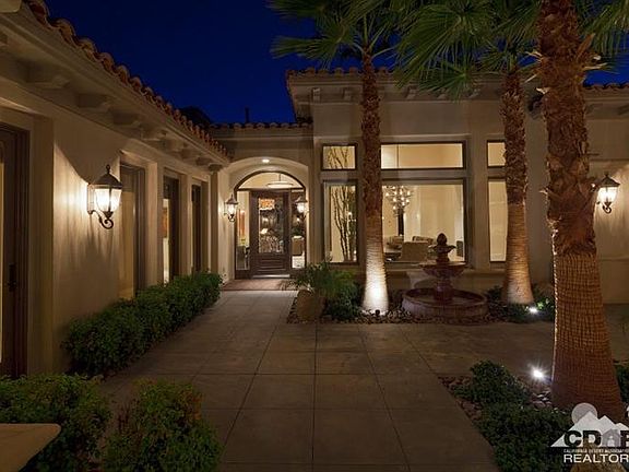 Stunning golf and mountain views are showcased in this lovely Italianate designed home in Toscana. An inviting courtyard connects the main home and the private detached guesthouse. Two sets of dramatic 10' disappearing sliders open the great room to the outdoor entertaining pavilion that features a custom pool and spa with waterfall and firebowls, bar, built-in barbeque, fire pit and misting system. The home has been completely updated with custom features throughout including beautiful stone flooring, an iron entry door, a sound system and hand-crafted built-ins. The family room and living room are joined by the wet bar and leads into the gourmet kitchen which offers a large island, breakfast nook and Sub-Zero and Wolf appliances. The butler's pantry connects to the dining room with a custom built-in buffet. A detached guesthouse includes a sitting room and bedroom with en-suite bathroom.The main home contains two guest bedrooms each with their own en-suite bat
