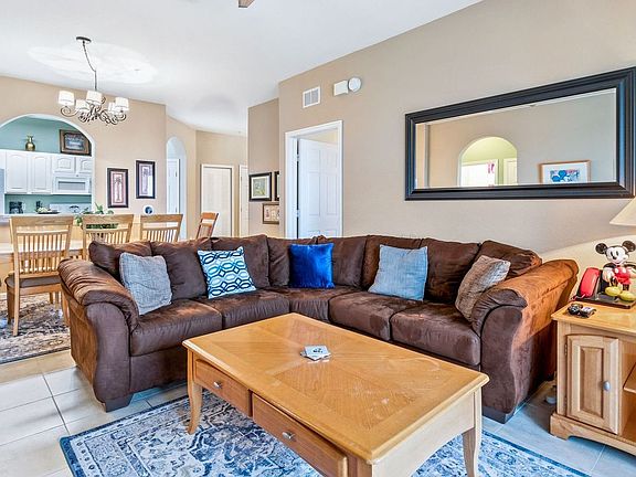 Welcome to this inviting 3-bedroom, 2-bathroom condo located on the 4th floor of the Windsor Hills Resort, a gated community just 3 miles from Disney World. With a fully equipped kitchen and dining space for 8, this condo offers a private screened balcony and is perfect for families seeking a comfortable home base in Central Florida. Enjoy the convenience of being just a 2-minute walk from the clubhouse amenities. The condo features a fully equipped kitchen, perfect for preparing meals and dining with family or friends. Relax in the spacious living area or enjoy the fresh air on the private screened balcony. The condo is designed to provide a comfortable and convenient stay for guests. Guests have access to the resort-style zero-entry pool, two water slides, an interactive splash pad, playgrounds, a fitness center, sand volleyball, basketball and tennis courts, and an arcade. Clubhouse access is available via wristbands, with a maximum of 8 wristbands provided for this unit. Free on-site parking is available, with a maximum of 2 cars allowed per condo. Additional rental items such as BBQs, cribs, pack-n-plays, strollers, and high chairs are available for rent. Situated on Comrow Street, this condo is ideally located near popular attractions and shopping destinations. Walt Disney World is just 4 miles away, while Universal Studios and SeaWorld are 16 and 14 miles away, respectively. The Orlando Airport is 25 miles from the resort, and both Atlantic and Gulf Coast beaches are within driving distance. A Walmart Supercenter and dining options are just 1 mile away. The condo is smoke-free and pet-free for your comfort. Parking rules are strictly enforced, and vehicles must not block the sidewalk or park on the street to avoid towing. Wristbands must be worn at all times while using clubhouse amenities. The management company offers online check-in and 24/7 on-call maintenance. Towels and linens are provided, and complimentary WiFi is available. Guests are responsible for replenishing any starter supplies provided, as restocking is not available.