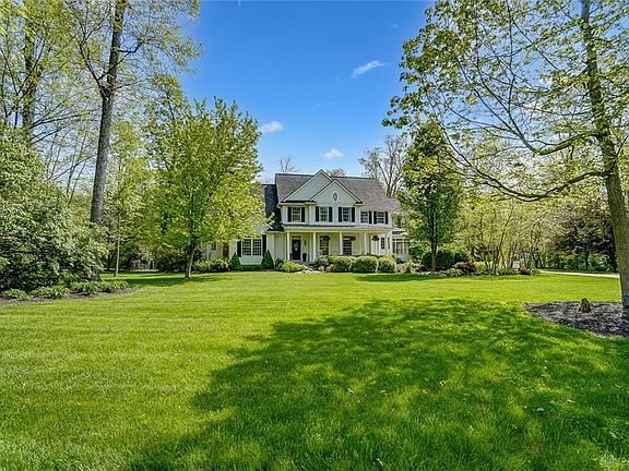 One of the most classically beautiful homes located in the sought-after Stone Ridge (the Woods) development! When you pull into the long driveway, you will fall in love with the home's charming white exterior and large wrap around covered front porch which warmly invites guests to this 5,500+ sq ft showplace. A gorgeous two-story foyer welcomes you inside and the hardwood floors flow artfully from here. You will love the great room with soaring ceiling, impressive fireplace & grand staircase to the 2nd floor. Upstairs are 3 additional generously sized bedrooms, a MASSIVE bonus room over the garage and 2 full baths! One is a Jack and Jill and has a claw foot tub! Back on the main level, the formal dining room flanks one side of the open foyer. On the other, enjoy the stunning office with glass paneled doors and marble. The gourmet eat in kitchen has granite, double ovens, gas cook top, corner kitchen sink with picture windows and prep sink. Nearby is the rear staircase that leads to both upper & lower levels. Beautiful breakfast room located off of the kitchen with lovely large windows. Magnificent 1st floor Master Suite w/bay window & back door that leads outside to the deck & beautiful back yard. Lovely and large master bath with oversized shower (hello body jets) and soaking tub. Laundry located on the main level! The lower level offers huge recreation and family room spaces, gas fireplace, a half bath, egress window and more unfinished areas! Side entry, oversized 4 car Garage. Screened in porch leads to back deck and private wooded lot. Play set in yard does not convey. Brand new roof. Corporate relocation so additional documents required. Seller negotiates offers but the Corporation will sign all paperwork and be seller. This will require more patience to get things signed and back to the winning buyer's agent. FYI. Seller plans to allow showings Friday-Sunday and respond to offers on Monday. HOA $250/yr. 3,953ft above grade, 1,506 below per county auditor.