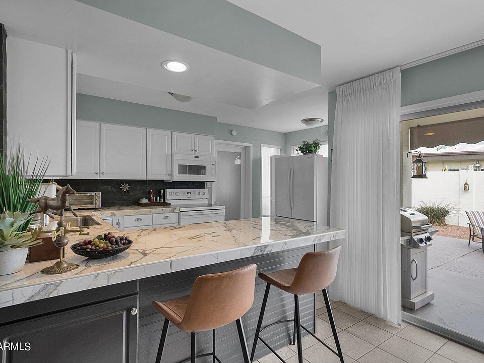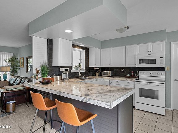 Experience resort-style living in this 55+ community in the heart of Scottsdale. This stunning 2 br/2 ba TH is nicely renovated and is the perfect blend of style, comfort, and convenience. The open floor plan features a spacious living area, light and bright kitchen with a breakfast bar which opens to a dining area to host guests. The large primary suite features a private bath. The second bedroom is equally spacious, making it the perfect space for guests or a home office. Step outside and enjoy the warm Arizona sun in your own private yard. The large lot is perfect for outdoor entertaining and gardening, The property also features access to community amenities such as heated pool & clubhouse. With its ideal location and low HOA fees, this is a must see!
