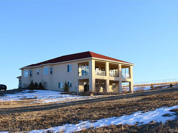 Country living on a horse property 3 minutes from Historic Downtown Parker. Custom walk-out ranch with city and mountain views. Enjoy 10' ceilings with a large kitchen and open-concept Great Room, large walk-in pantry/storage, and beautifully finished full basement featuring a mother-in-law suite, rec room, sauna, and steam shower. Super-efficient ICF technology home with natural hickory hardwood and natural stone tile floors and 8' doors throughout. Enjoy gorgeous sunsets from the huge covered deck with motorized shades, and picture-perfect mountain views. Park your cars in the over-sized 3-car garage and store your RV's in the on-site carport equipped with water, septic, and electric hook-ups. Private, fully fenced lot with motorized gate, paved driveway with 6 parking spaces and 2 turn-around spots. No water bill, ever. Parker Core Knowledge (K-8 Charter School ranked in top 5 schools in CO) is less than a mile away. 20 min to DTC, 35 minutes to downtown Denver. Maintenance-free living with an easy commute!