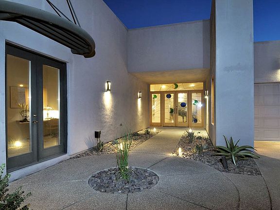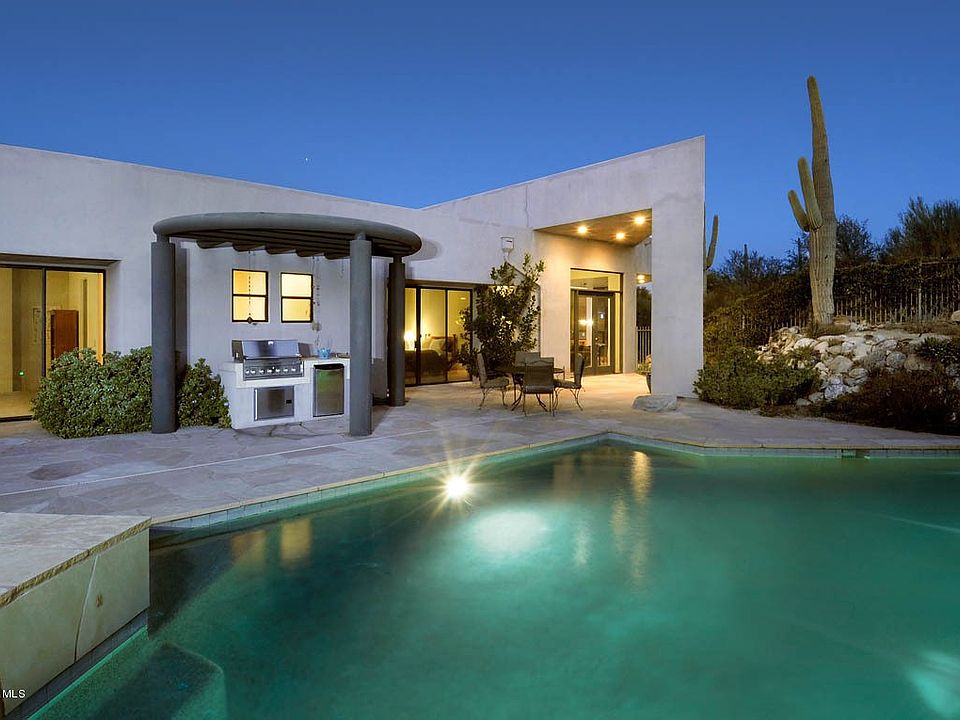 An amazing contemporary home with panoramic mountain views on a secluded 1.2 acres in Pima Canyon Estates! Fabulous tall windows show off the awesome mountain and desert setting.Pebbletech pool/spa. Pristine interior with exquisite features; elegant Fiona 24x24 travertine floors accented with flamed and honed black granite; a gourmet kitchen with a Wolf 6 burner cooktop and other top appliance names-Sub-Zero, Dacor, Fisher&Paykel. A wonderful den/office with city and mountain views.A luxurious Master Suite with a stone fireplace and sitting area,along with a the best ever Master Bath w/travertine & granite and city views from the spa! Design light fixtures;glass front door & accent wall; huge bedrooms. No interior steps. Private!