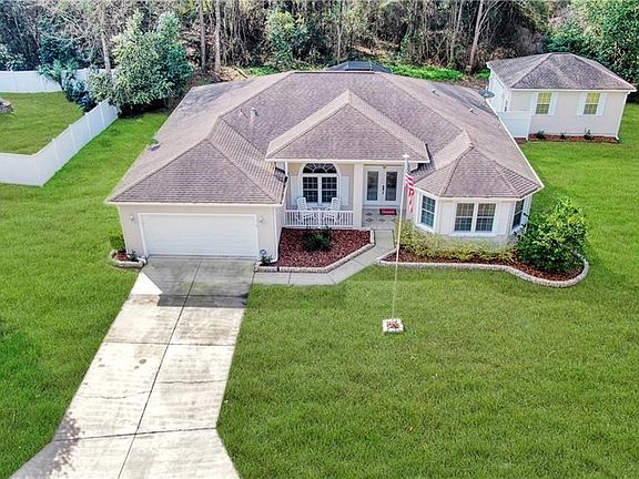 GET READY TO BE IN AWE OF THIS STUNNING HOME! From the moment you step inside you will be impressed by this home's charm. Real Hardwood flooring can be found throughout the Formal Dining Room, Living Room and Den/Office area. Stainless steel appliances; NEW dishwasher and microwave, Kraus single basin deep kitchen sink with NEW faucet. Custom Shelving in the Walk-in Pantry. High ceilings enhance the spacious open, split-bedroom floorplan. Owner's Suite offers gorgeous bay windows facing the front of the home as well as NEW carpet in the bedroom and walk-in closet. Custom shelving in Guest Bedroom closet as well as NEW vanity and sink in Guest Bathroom. Window Treatments will convey. Triple sliders lead out to a beautiful glass-enclosed lanai along with an additional screened in patio. Wooded area lines the backyard for additional privacy. Newly painted Exterior and Interior as well as NEW door handles, hardware and lighting throughout the home. Outside you will find newly planted shrubbery, as well as an Irrigation System that has been installed in front and side yard. FREE-STANDING 24'x20' WORKSHOP (wired for 220 with a separate utility panel) is a MUST SEE FEATURE!!!