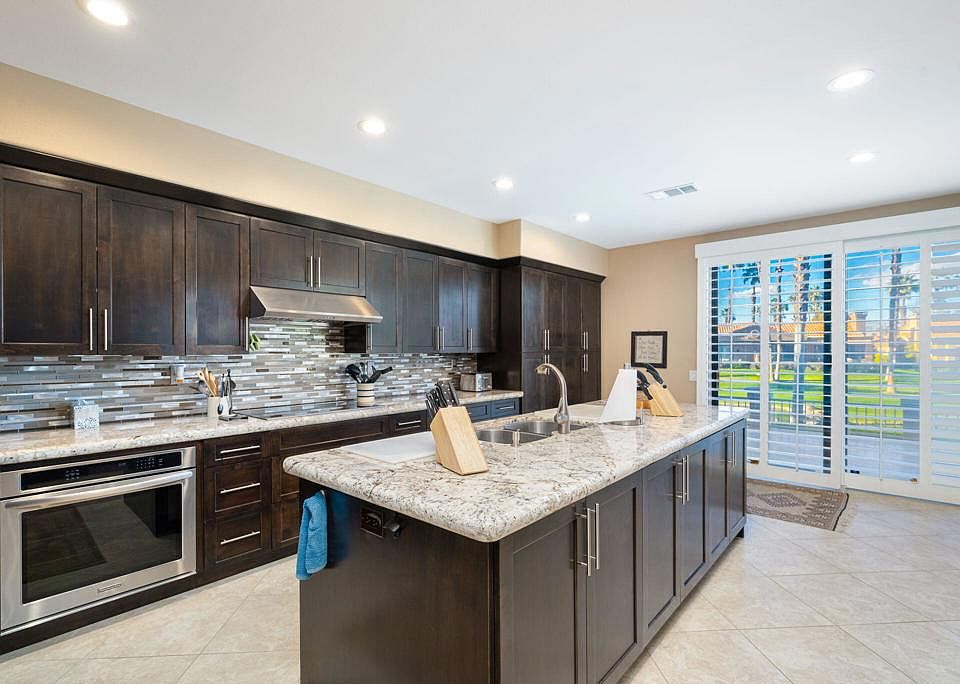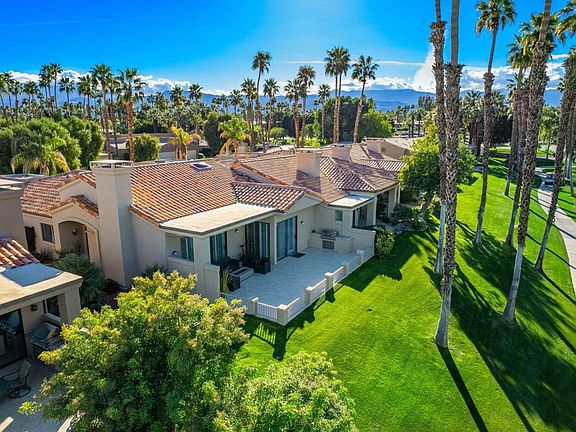 Welcome home to the most sought-after floor plan in Palm Valley Country Club, the Willow. This highly upgraded condo really has it all. Upon entering, you are greeted by coffered ceilings with LED lighting and custom stonework in the dining and living rooms. This stunner also features a beautifully appointed chef's kitchen flowing into living area great for entertaining! The beautiful ensuite primary bedroom has a spacious walk-in closet, double vanity, and tile shower accompanied by a separate bath. For additional convenience and privacy ,the two other guest rooms are also ensuite. The amenities are endless: a tankless water heater great for the chilly winter mornings, plantation shutters, and a built in BBQ on the spacious golf course facing patio to name a few! This property is a real must see!! Palm Valley Country Club features 2 golf courses, multiple tennis and pickleball courts, fitness center , restaurant and bar, and multiple pools and spas located throughout the community. Come and see how beautiful life can be on Begonia Lane at Palm Valley today!