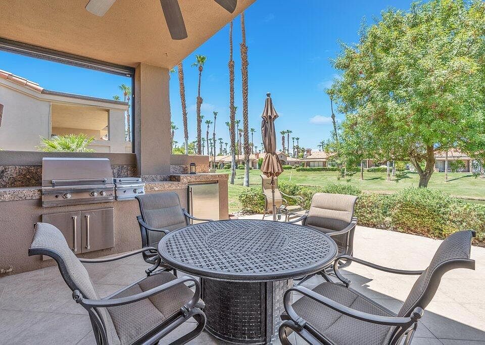 Step into wide-open elegance with this beautifully upgraded Willow floor plan at the sought-after Palm Valley Country Club. Thoughtfully remodeled with walls removed to create a spacious, seamless flow, this home invites effortless entertaining and relaxed living.Enjoy an extended patio with captivating water views, perfect for dining al fresco or simply unwinding with a good book. The chef's kitchen features rich cabinetry, sleek granite countertops, stainless steel appliances, and a large island that's as functional as it is stylish. The primary suite is a true retreat with vaulted ceilings, a walk-in closet that rivals a boutique, and private patio access.The custom outdoor kitchen with built-in BBQ and fridge makes entertaining a breeze while overlooking lush fairways and serene lakes. With 2 Ted Robinson-designed golf courses, tennis and pickleball courts, 46 pools and spas, a full-service clubhouse, fitness center, and a vibrant social scene, Palm Valley is known as the FUN Club!Whether you're looking for a full-time residence, a weekend getaway, or a seasonal investment, this home is priced to invite offers. Come experience the best of resort-style living in the heart of the desert.