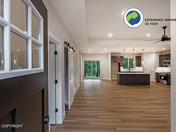 Welcome to your new home! Have you ever dreamed of living in an brand-new construction home that's never been lived in before? Now is your chance! This modern home is located at a convenient central spot between Palmer and Wasilla - perfect for making quick trips into town or just enjoying the neighborhood. Plus, there's another brand-new construction house right next door so you won't...be the only brand new neighbors. When you venture inside, there are quartz counters and luxe details like a freestanding bathtub with floor filler faucet and separate oversize shower. You'll love having two bedrooms on one side of the house where they can have their own space away from the owner's suite and other bedroom (these two rooms are separated by the owners suite closet). The open plan allows for distinct areas while still feeling spacious with tall ceilings and recessed lighting throughout. On top of it all, there's plenty of outdoor space to enjoy too! A covered front porch welcomes guests while a massive XL covered rear deck will make hosting barbecues or relaxing afternoons much more enjoyable for everyone involved. Finally, don't forget about that triple car garage so there will always be room to park your ride(s).