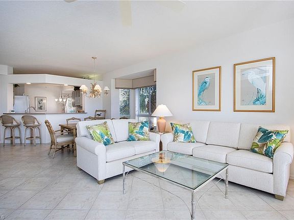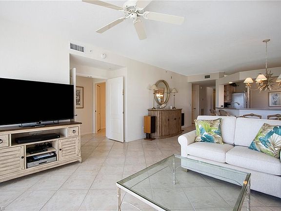 Owner will take 90-days. Located on the 2nd floor, and offering beautiful views of the golf-course and lake, this 3 bedroom/3 bath condominium has 1813 sq. ft.' of living area, an open floor plan and is very neat and clean. Enjoy the easy access, Just across the street, to catch the Tram to the Beach and Restaurants of Pelican Bay. The Living Room has 2 neutral-toned, upholstered couches, large flat-screen TV, DVR/WIFI, accompany tables, lamps and artwork. The Dining area has a rectangular table and seats 6. The well-equipped Kitchen offers quality cabinetry, off-grey counters and bar/bar stools, white appliances, and a round table with 4 chairs. The Master Suite has a King-Size Bed, quality linens/towels, matching end tables, dresser, Flat-Screen TV, walk-in closet, and a private bath with 2 sinks, and a spacious walk-in shower. The Guest bedroom offers a Queen Size Bed, quality linens, tables, dresser, TV, and bath with a combination Tub/Shower. The Third Bedroom has 2 Twins, desk area, TV, and a private bath with a walk-in shower. The extended Lanai has a chaise lounge, two wicker chairs, bistro table, and has beautiful golf-course and lake views. This is a wonderful residence for your winter get-a-way. Pebble Creek has a lovely pool/spa, clubhouse with exercise and kitchen and facilities. Enjoy a short walk to the Tram Station. Pelican Bay offers 2 Restaurants, Tennis Program, State-of the Art Exercise Facility, side-walks, bike-paths, and much more. Naples' Premier Philharmonic and Art Gallery is close by. Central to Waterside Shops, Restaurants, and Shopping, as well as the" Mercato" Shops, Galleries, Whole Foods, and Silver-Spot Theater.