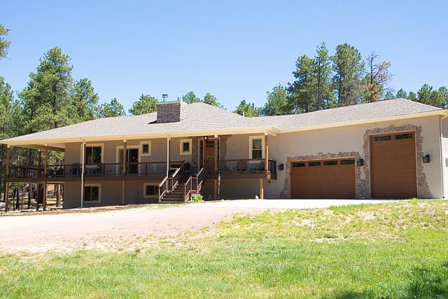 Custom built rancher located in desirable School District 20 with high end finishes on a gorgeous 4.55 acre lot with mature pines. Upon entering the home you are greeted by an open main level floor plan. The great room is spacious and perfect for entertaining with a wood burning stove insert, glowing red oak hardwood floors, upgraded alder trim and doors. The great room is open to the kitchen and walks-out to the huge 103x12 covered wrap-around composite deck with gas connection for your grill and recessed lighting. Gourmet kitchen with an abundance of solid dove-tailed hickory cabinetry with pull-out shelves, soft close drawers and doors. Slab granite and slab quartz counters. Spacious pantry with built-ins. High end appliances including a Bluestar gas cook-top with griddle and a convenient pot filler, Dacor double oven and Bosch dishwasher. Private master suite with private composite deck, ambient lighting, over-sized double shower with seamless shower door, quartz counters, oil rubbed bronze bath fixtures, linen closet, spacious master closet with built-in drawers and closet organizer. Two additional large main level bedrooms with walk-in closets and a main level office. Finished walk-out basement with a dream family room featuring a wood burning stove, walk out to a private patio (wired for a hot tub), pool table/game area and a full bath with a quartz double vanity. Large wet bar/secondary kitchen in the basement family room with beautiful soapstone counters, dishwasher, beer tap, refrigerator and reclaimed style cabinetry with bar seating area. Unfinished portion of basement was designed for 3 additional bedrooms, an additional bath and possible home theater room. 24 ft deep RV garage with 12 foot automatic overhead door. No covenants or HOA. Zoned for horses.