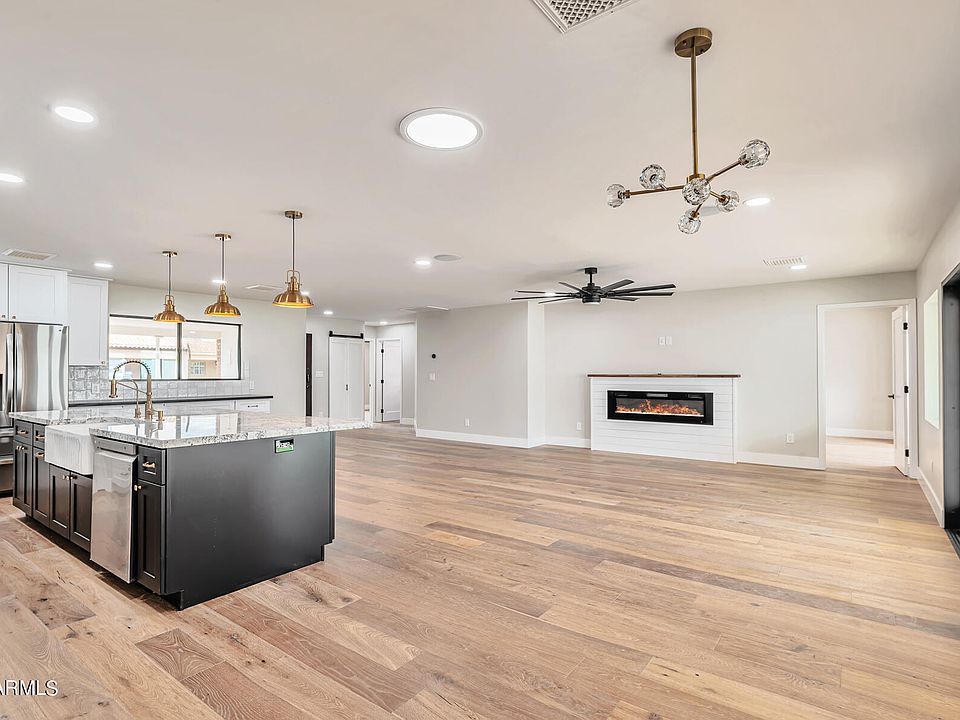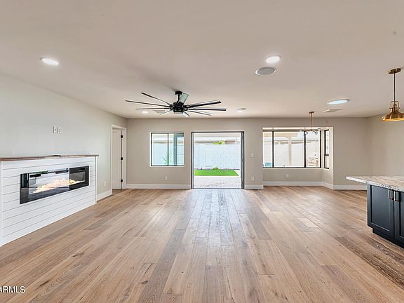 Welcome to this beautifully remodeled townhome in the highly desirable active adult community of Villa Monterey. No surface went untouched, or expense spared in renovating this 2-bedroom 2-bathroom townhome, to include a new HVAC system and new roof! The kitchen is a chef's dream come true with huge island, gas stove, stainless steel appliances, walk in pantry, and coordinated gold lighting and plumbing fixtures. The expansive family room with its warm electric fireplace and wood mantle is accented with ample natural light from the French doors to the back patio and multiple solar tubes in the ceiling. You will not want to leave the master bathroom, with its beautiful blue double vanity, gold designer fixtures, tiled walk-in shower, and expansive walk-in closet with barn door. Enjoy Arizona's outdoor living to the finest with this back patio and its tumbled travertine pavers, no maintenance artificial turf, and built in BBQ. Welcome to your next Home Sweet Home!