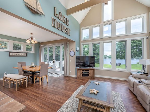 Experience the pinnacle of modern living at 7656 Hilltop Ridge, a contemporary gem where thoughtful design meets exquisite craftsmanship. Bathed in natural light from abundant windows, this residence exudes a bright and airy ambiance throughout and offering birds-eye and panoramic views of Canadian Lake. Step into the great room and be captivated by soaring vaulted ceilings adorned with striking beams. The centerpiece is a stunning floor-to-ceiling stone three-sided fireplace that adds warmth and elegance to the space. The kitchen is a chef's dream, featuring newer appliances, sleek granite countertops, and ample storage to keep everything organized. Whether you're preparing a quick meal or entertaining guests, the spacious layout and high-end finishes make every culinary experience a pleasure. For those who need space to work or play, the expansive workshop area is perfect for hobbies or projects. The finished lower level offers additional living space with daylight windows that flood the area with light. Here, you'll find a cozy family room, a nice bar area, extra bedrooms, and a full bathideal for entertaining or accommodating guests. Step outside to discover a backyard oasis with impressive lakeside landscaping, a tranquil setting, perfect for relaxation or outdoor gatherings.