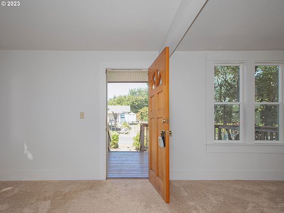 Cozy and comfortable at the South base of Mt Tabor in Montavilla neighborhood; this little gem has original charm with updates. Enjoy those warm summer evenings on the covered front porch in this quiet neighborhood yet close to schools and parks. Large updated kitchen with gas range/double ovens, refrigerator and built in dishwasher. Remodeled bath with walk in shower. Back porch takes you to the fenced in yard. Small bedroom on the main floor would be perfect office/craft room. Upstairs is an open loft area on each side of the stairwell. Abundant storage upstairs as well as in the unfinished basement. Washer/dryer included. New roof installed in 2023. Open Saturday 12-2 [Home Energy Score = 6. HES Report at https://rpt.greenbuildingregistry.com/hes/OR10221792]