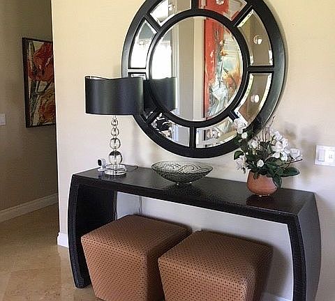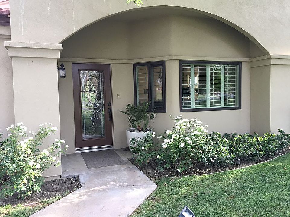 Palm Valley Country Club home for sale: Remodeled fully furnished (per inventory) home with two bedrooms, den, 3 baths and 2 car garage. Located in Palm Valley Country Club this home sits in a sprawling corner location with shady trees in a park-like setting. A beautiful 1918 sq. ft. home with new AC /furnace and new ducting. The living room, dining room and kitchen have limestone tile flooring. The kitchen offers designer cabinets, granite counter tops, and GE stainless appliances. Plantation shutters and new energy efficient windows and doors throughout! Remodeled bathrooms have custom cabinets and granite counter tops. The master bedroom has a secluded courtyard. The Golf-course patio has stone tiles and built in BBQ. The patio faces East with stunning water and mountain views overlooking the 10th Hole of Palm Valley’s championship course.