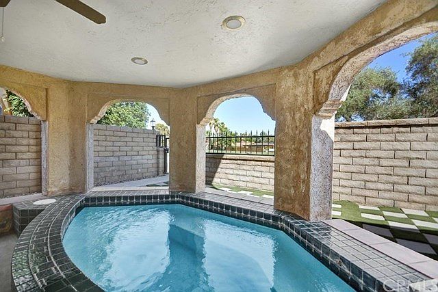 One of best locations in all of Palm Desert Country Club. Home is on the Golf Course with Southern exposure & awesome Mountain Views! Home is situated on the Tee Boxes, so no need to worry about errant golf shots. One of the best features of the home is the covered spa that allows for year round use. Great 3 Bedroom 3 Bathroom, Unique Open Floor plan home with fireplace and great interior entertainment area with bar. The other big bonus is the upstairs private guest quarters that can also double as a master retreat that has even better views. The views are extraordinary and with the covered spa, one can enjoy both golf and the peaceful mountain views year round. No HOA Dues, play Desert Willow GC at a reduced resident rate or pay as you play golf at Palm Desert CC! Close to Tennis Gardens and Polo Grounds.