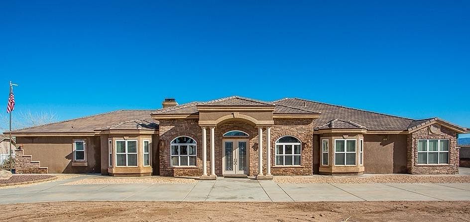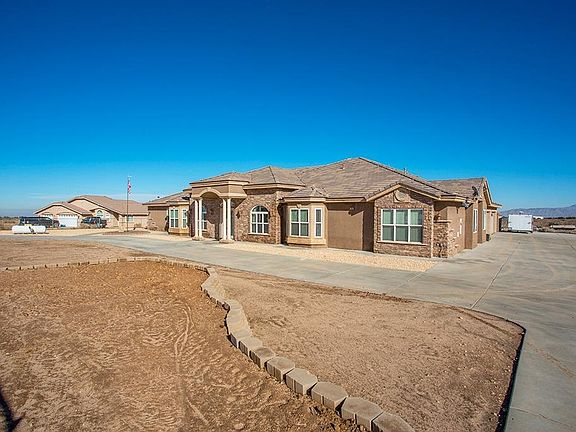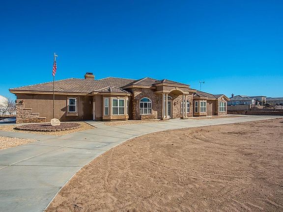 Beautiful custom estate home in Oak Hills on 2.38 acres with panoramic 180 degree view of the mountains and desert. This luxurious spacious 5,374 sqft home features 6 bd, 4.5 ba, 16 ft vaulted ceilings. Grand kitchen with granite counters, island, bar seating, builtin stainless steel appliances,large fridge, double oven w/warming drawer, 6 burner stove w/griddle, large walk-in pantry, pot shelves, maple cabinets, wet bar w/mini fridge and ice maker. Open family room has a lovely fireplace with a wood burning insert, large windows, french doors leading out to backyard, formal living room, formal dining room with large windows that brighten up the home,double door entry home office with built in shelves. Huge master bedroom w/fireplace, large walk-in closet, french doors, attached private office, large master bath w/dual sinks, jetted tub, separate shower. Indoor laundry room w/sink and built-ins , massive amount of storage throughout, spacious bedrooms, guest bedroom w/private entry. Backyard has grand covered patio with fans and recessed lighting, attached 4 car garage w/8 ft doors. This property has a circular driveway with automated entry door, completely fenced and an intercom system. Commuter friendly close to Fwy, shopping, and belongs to Snowline School district. This home is a must see.