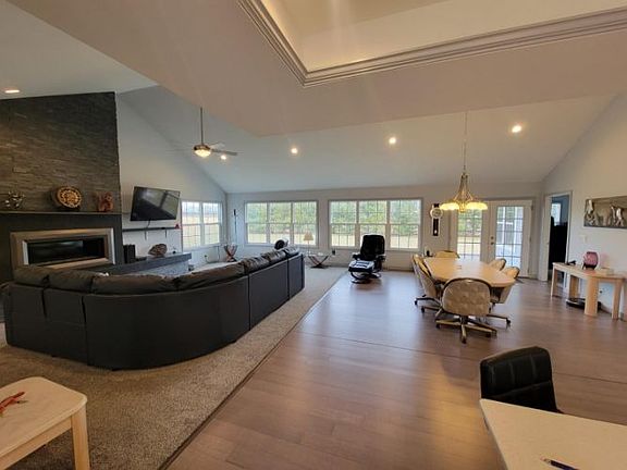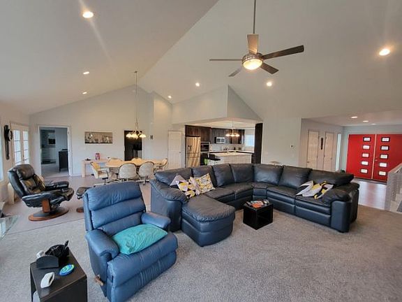 Like new Custom designed Executive ranch with 3 bedrooms, 2.5 baths and over 2400 sq ft of living space on main level. Amazing opportunity to live in the newly developing Prairie Trails subdivision. Step in the foyer and enjoy the open space floor plan. The kitchen has an adjacent dining area, which flows seamlessly to the living room area with gas fireplace .Lots of windows provide much natural lighting throughout home. Large master bedroom suite has huge walk in closet, and state of the art bathroom including walk in multi head shower. Large finished laundry room on main floor for your convenience. Three car garage great for cars, riding mowers, bicycles and other vehicles. Generac home generator already in place! The latest in Pex valve control plumbing installed. Home built on 3 4 acre lot in 2018. With current cost of lots, building materials and upgrades, you couldn't build the home for asking price today. (Do not let cat out)