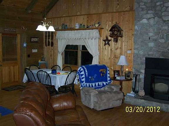 Get back to nature while enjoying wildlife & relaxing to the sound of a near by stream on your private screen porch or open patio. This beautiful log home setting on 9.85 +/- acres offers cathedral ceiling, open loft seating area, master suite with its own seating area & beautiful view from within your home. Has security system. Close to I64, Refinery, Calgon, shopping and schools. Seller is leaving riding lawn mower, window treatments and all appliances. Sq. ft. is approx.