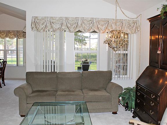 Want life to be convenient and easy? Check out this pristine townhome at Heritage Eagle Bend, a 45+ all amenity gated community. This light and bright townhome is located near the Buchanan Gate for easy access to the Aurora Parkway and E-410. The yard backs to greenspace & most exterior maintenance is covered by the HOA. Gorgeous upscale kitchen remodel featuring quartz countertops combined with black stainless steel 5-door refrigerator, slide in electric range, dishwasher, and matching microwave. Both baths have ceramic tile floors, the master bath provides double sinks, a shower with safety seat and large walk in closet. Powder room offers both shower and tub. Full sized washer and dryer sit conveniently on storage pedestals. For entertaining, a gas fireplace in the living room and seating for 8 in the lovely dining room. The second bedroom can be used as an office, hobby room, or for guests. With winter coming, Buchanan is one of the first streets to be plowed and with a SE exposure, the snow melts quickly so you can easily exit the gate and be on your way. Live easy.