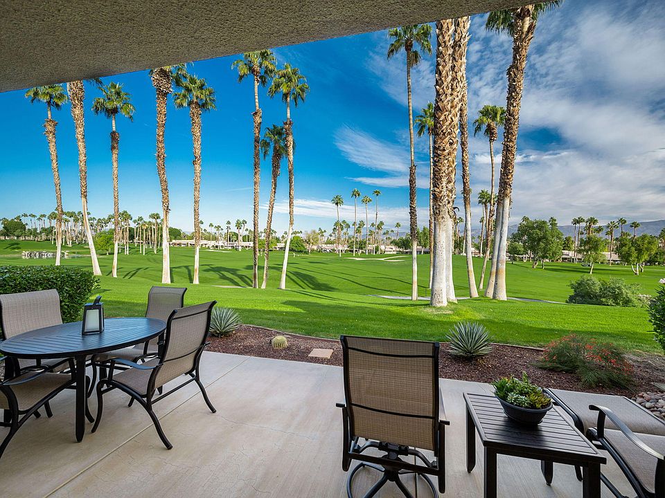 From stunning panoramic mountain views to your own private courtyard, this home is a perfect desert getaway! The spacious Jacaranda floor plan with 2 bedrooms and 2 bathrooms, provides an open kitchen, dining and living space. With granite kitchen counter tops, high ceilings, and modern porcelain tile throughout, you will be awed by this home's intimate setting. The main master bedroom has expansive fairway north/west/east views and an adjacent master bath with a luxury spa-like shower and ample closet space. With dual master bedrooms, this home offers room for family and friends. The courtyard patio continues the home's enticing outdoor living. Letting you experience the privacy and spectacular fairway views in one home. Located in Palm Valley Country Club you will be invited into one of the desert's premier private resort golfing and tennis communities. Come check out one of the most coveted lifestyles in the valley and make this beautiful condo your next home.
