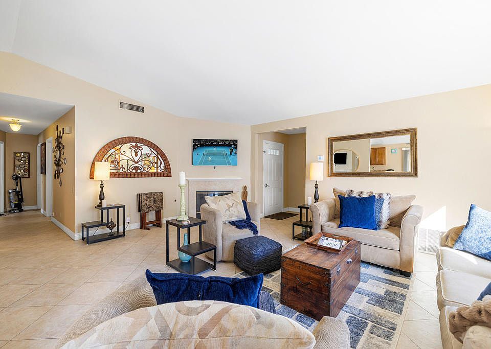 This home needs a little of your TLC, great bones, good location, No HOA,, part of Palm Desert Country Club, just $35 a year to have use of the pool. Mountain views and a large back yard. The home has 6 mature fruit trees. Easy maintenance Desert Landscaping!