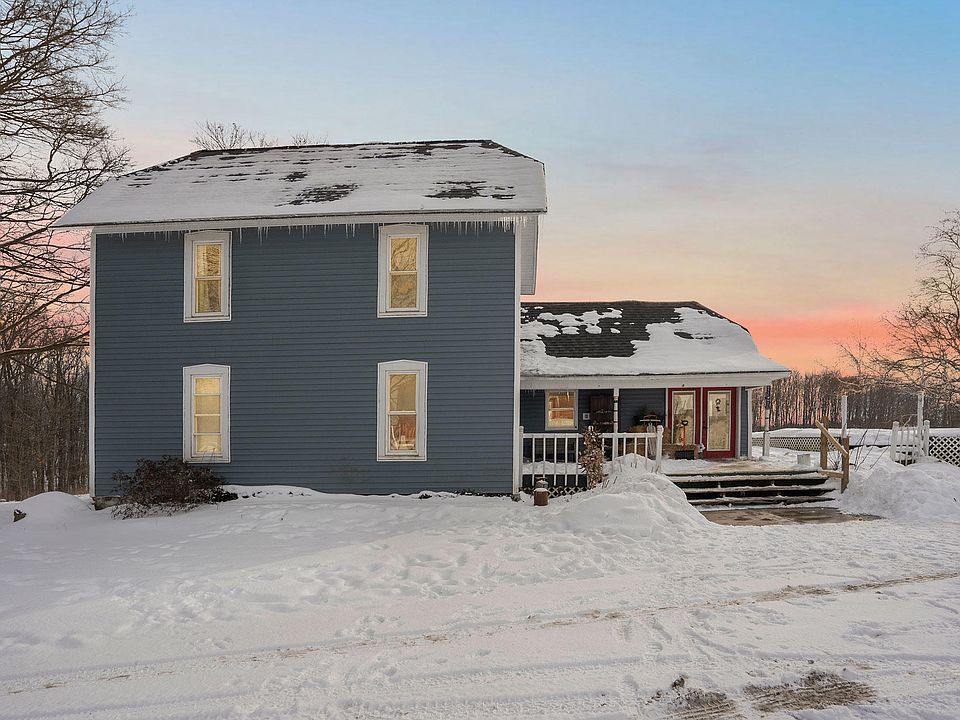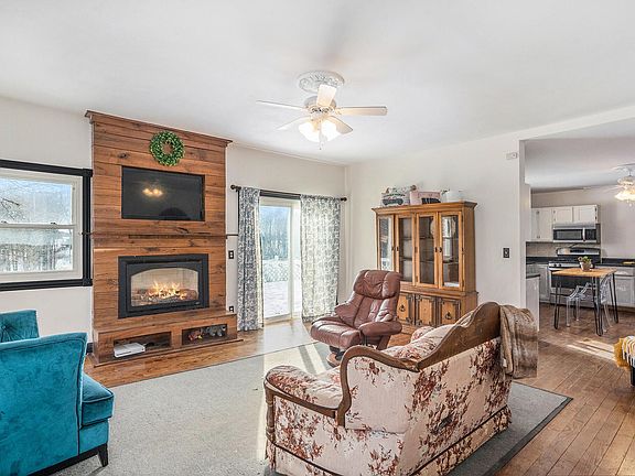 Welcome home to a private 4 acre farmhouse charmer with a circle drive, two outbuildings, and tons of upgrades. Inside the 4 bed, 2 full bath home you will find oak flooring and new walnut flooring throughout. The updated main bath and kitchen will not disappoint and the exterior features a newer roof and siding (2010). Home can be heated via the propane furnace or the wood pellet stove and the living room fireplace functions as a living or gas log!