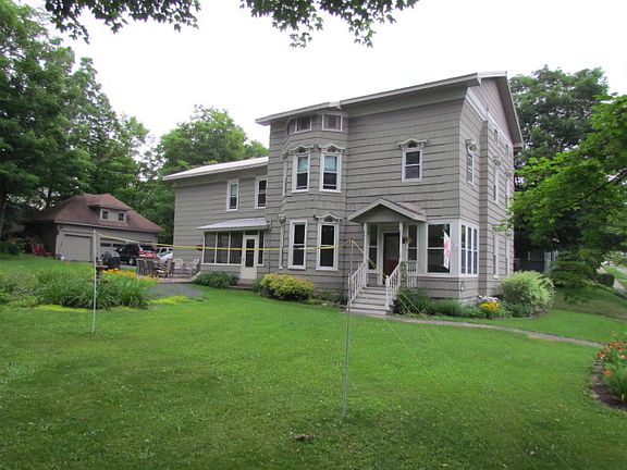 All the remodelling has been done. Move right in! Updated walls and ceiling, kitchen, baths, steel roof, double insulated windows and updated furnace. Side yard semi private and lots of flowers. Modern kitchen with tons of cabinets; many pull our. Center aisle with seating. First level laundry in half bath. Rear staircase to the 2nd level. Full walk up attic. Second level to Triple Stall garage. Updated natural gas fired hi efficiency Buderus boiler with separate wood furnace, in case one prefers wood. Side screen and enclosed porches, side patio and much more.