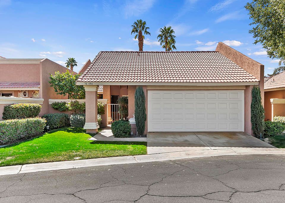 Welcome to one of Palm Desert's best gated communities, Oasis Country Club. This single level HUD-Owned Condo offers 2-bedrooms, 2-bathroom, and an attached 2 car garage. Enter through a beautiful, tiled courtyard that offers the warm morning sun. Enjoy stunning views of our local mountains, greenbelt, and community pool, all from your covered patio. Gaze at breathtaking sunsets while sitting in the great room allowing the warmth of your natural gas fireplace and favorite beverage from your private wetbar lull you into a tranquil state of mind. With so many features and amenities, this unit is perfect for full time residency or an investment property. The Oasis Country Club offers fine dining with fun and entertaining events. Enjoy drinks in the upstairs lounge or downstairs grill. The Oasis also features pickleball and tennis courts, 18 pools and spas a fitness room, library, and Golf Pro shop. Residents of the country club own the 18-hole executive golf course which makes for reasonable golf rates. The Oasis Country Club is a sought-after club for seasonal rentals which results in top rental income. The HOA covers trash, landscaping, roof, community pools and hot tub, exterior paint to the structure and basic TV and internet.