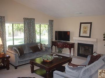 This lovely 1432sq ft Valentino floor plan has newer kitchen appliances, central air and flooring with the feeling of a private pool only steps away from the spacious patio which is enjoyed by all family and friends especially children. (18 pools and spas in this community.) The three bedroom and 2 bath home, located in a quiet cul de sac, has one bedroom used as a den with a hideaway bed. (Few furnishings are included.) The Oasis Country Club has fine dining, golf, tennis and sports. The 18 hole executive course offers a challenging day of golf with 22 lakes on 18 holes. Member owned golf course and clubhouse with all memberships available. This complex is gated and offers 24 hour guarded security. Great location for El Paseo shopping, dining and it is just minutes to the airport. Come make this your oasis under palm trees in this beautiful resort community. Brokered And Advertised By: Tarbell REALTORS/Desert Homes Listing Agent: Mike D. Kays