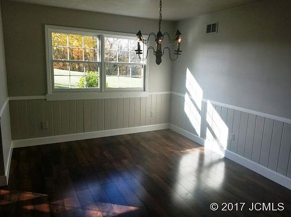 Great 2-story 4bd, 2 1/2 ba brick home on 3 acres in the quiet little town of Bedford! This home features an open foyer and staircase, large family room w/a wood burning fireplace, a formal dining area off the kitchen w/its own fireplace and access to the back yard, and a first floor laundry. The 2nd flr master bdr has its own walk-in closet with plantation blinds. The other bdrs are good size, too. Out back there are 3 decks to enjoy while entertaining family and watching wildlife. The bonus room can be a large bedroom or great room, or easily converted back into the 2-car attached garage. All appliances and shed in the back remain.