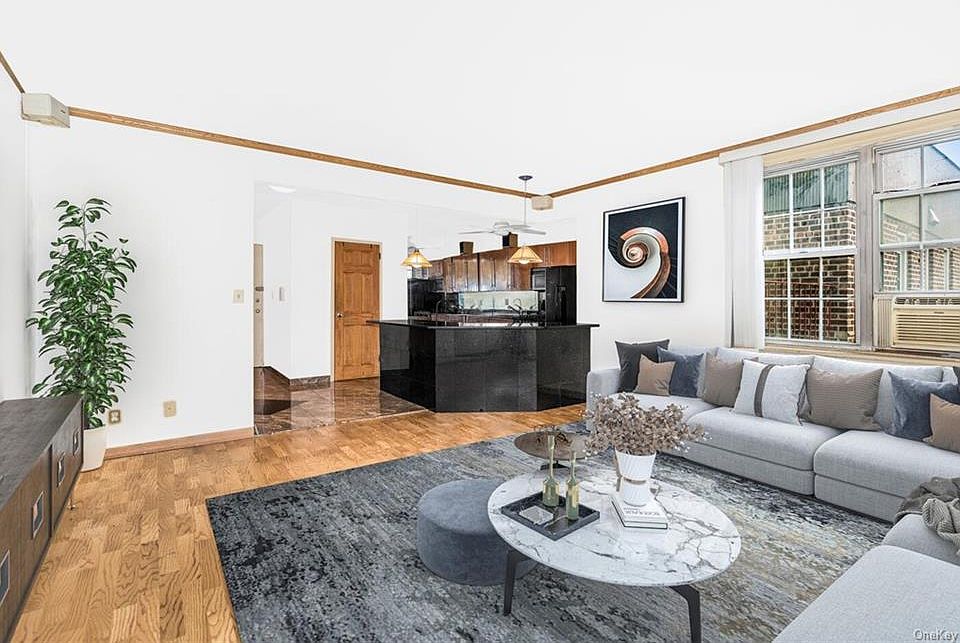 One bedroom with amazing low maintenance of $586 located at the very well maintained and manicured Fleetwood Park complex. Entry foyer with closet and seperate dining area flows into a spacious living room with over-sized picture windows. Open style kitchen with island offering granite counter-tops and an abundance of cabinetry. Large bedroom can fit a king size bed and has cross ventilation. Fleetwood Park offers live-in super, common laundry and a private playground. Close proximity to shopping, restaurants, major highways and walking distance to Metro North station allowing the commuter a 30 minute ride into Grand Central Station.