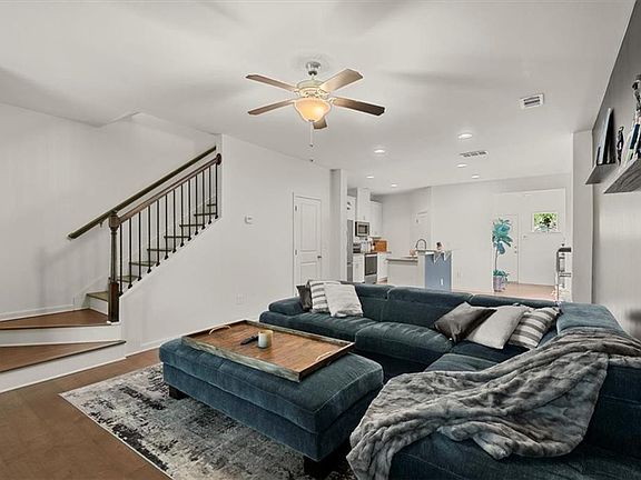 Welcome to this stunning almost-new townhome in the gated community of Cascades! Enjoy the roommate floor plan with both bedrooms having their own private bathroom. The main living area features an open concept, creating a seamless flow between the spacious family room, dining area, and the contemporary kitchen featuring light gray granite countertops and white kitchen cabinets – and don't forget the spacious walk-in pantry! Built in 2022 with 9' ceilings, you can expect modern touches. Both bathrooms feature light gray granite countertops, white cabinets and ceramic tile floors. Home has upgraded wood floors, backsplash, and fixtures. Cute back area has artificial grass that will remain. The electric fireplace is remote-controlled with different settings for heat, sounds, and colors. As a resident, you'll have access to the fantastic amenities provided by the HOA, including a pool, playground, picnic areas, and green spaces. HOA fees include front and back yard maintenance as well as trash pickup. Refrigerator to remain. Home is pre-wired for internet and security system.