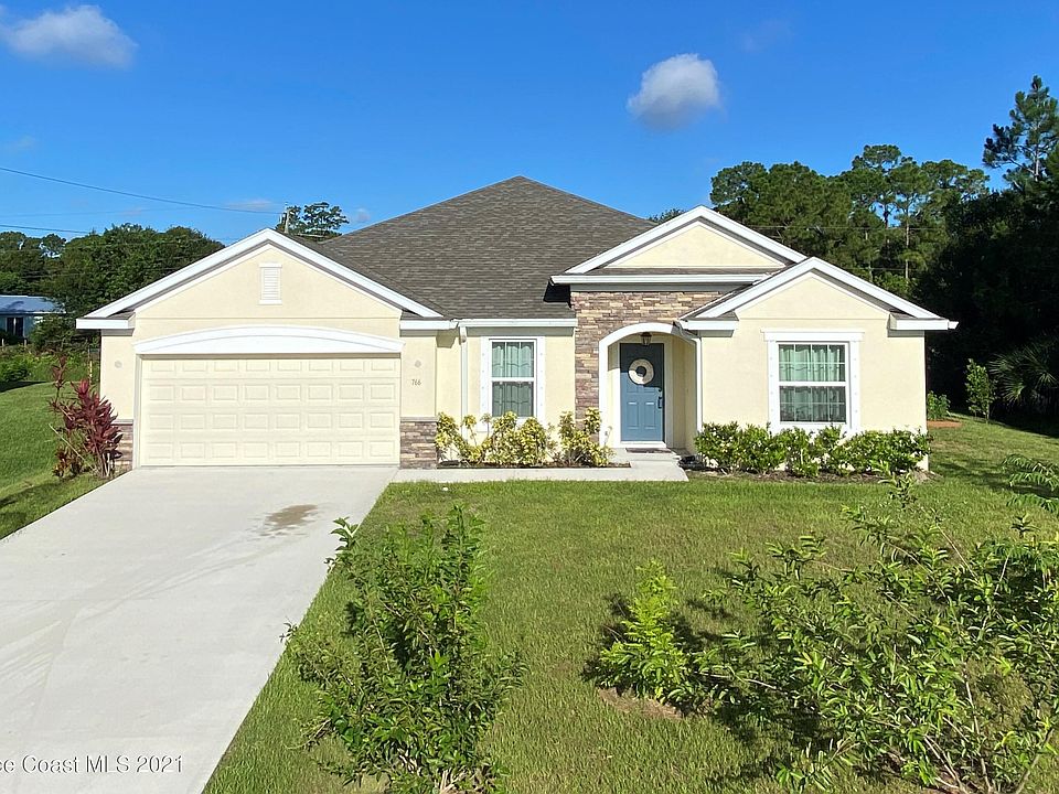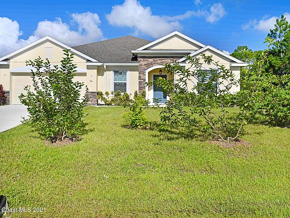 You must see to appreciate this beautifully designed open living area, split bedroom home. This 3 years new home is available for quick close and features 11''+ ceiling height and over $30,000 in builder upgrades including: 5 bedrooms PLUS additional flex/office space, upgraded floor tile, 42'' upper cabinets, Granite in kitchen and raised 36'' vanities with granite in all 3 bathrooms. The home features a large truss cover back porch which opens up to the well kept plethora of banana, Peach, Mango, Pineapple and other exotic fruits. City Water and exterior stone front elevation. The owners suite features tile flooring. walk shower, walk in closet, double raised vanity with granite, and a private water closet. You can save big on energy with the modern solar powered attic vent system.