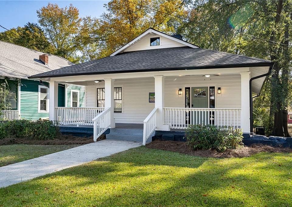 This Adair Park beauty boasts lovely historical charm combined with modern amenities - STAGING TO HIGHLIGHT THE ARCHITECTURE. This is a great house in an amazing location - just minutes to downtown and 2 blocks to the BELTLINE. Fantastic front porch with 2 ceiling fans, coded entry lock, 4 decorative fireplaces, Original restored windows, wide plank hardwoods, All new systems (HVAC, roof, appliances). updated plumbing/electric, New Kitchen with quartz countertops and white cabinets, pantry, 4 good sized bedrooms - one could easily be used as a rec room/hang out space, Master with en-suite and walk-in closet, bathrooms have all been recently re-done, additional flex room that leads to back deck, Back deck overlooks a nice sized back yard. The private driveway belongs to this house. Unfinished basement perfect for a workshop with interior stairs.